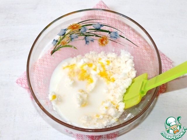 3. Добавьте желток, йогурт, масло и ванилин. Взбейте миксером до однородности теста.