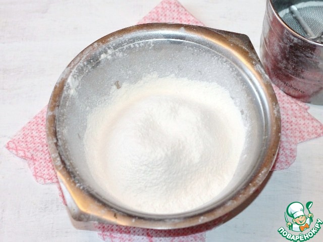 4. Смешайте муку с крахмалом и разрыхлителем, просейте.