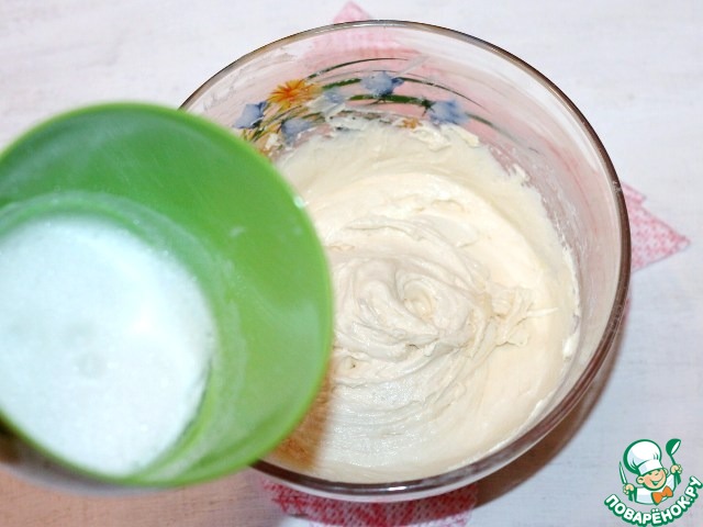 6. К полученной смеси добавить взбитый белок, и аккуратно перемешать ложкой или силиконовой лопаткой.
