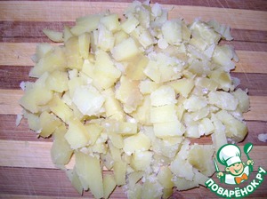 • Сваренный в мундире картофель почистить и нарезать кубиком