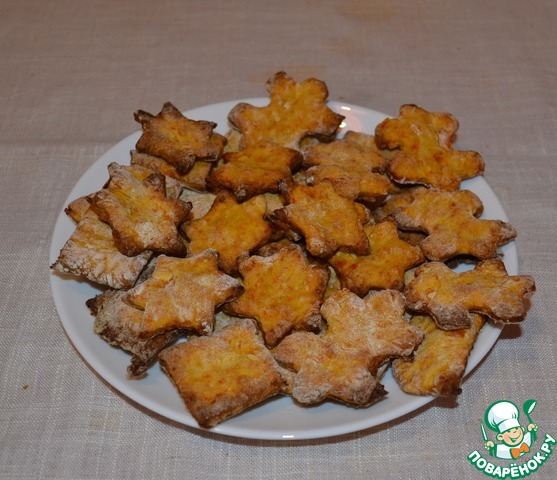Готовое остывшее печенье посыпать сахарной пудрой.