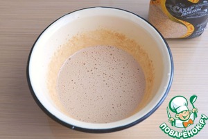 Смесь взбить, добавить разрыхлитель теста (1/2 ч. ложки).
