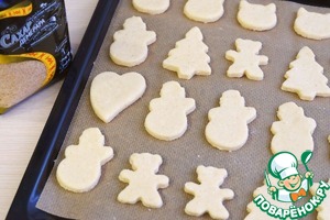 Подготовленное тесто раскатать в пласт толщиной 6-7 мм, формочками для печенья вырезать различные фигурки.