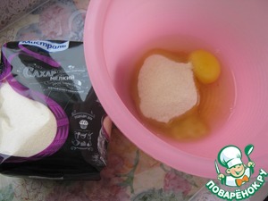 Приготовим бисквит. Хорошо взбить сахар и яйца до увеличения массы в несколько раз.