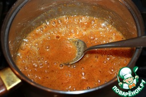 Варим, помешивая, на медленном огне до насыщенного карамельного цвета, на это у меня ушло 30 минут, масса начинает густеть.