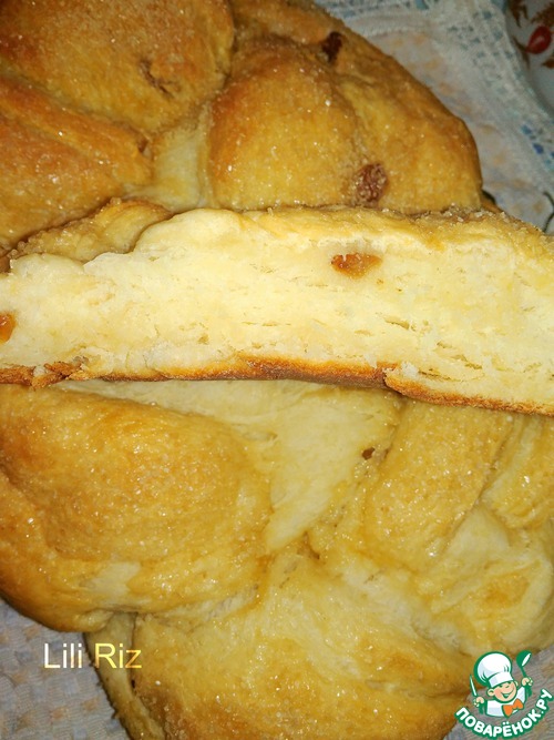 • Поставить косичку на расстойку, затем смазать разболтанным яйцом и посыпать сверху коричневым сахаром. Выпекать в разогретой до 180 град. духовке до готовности.