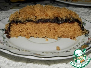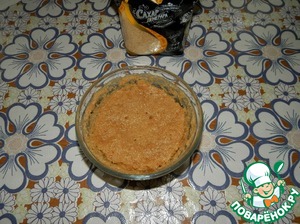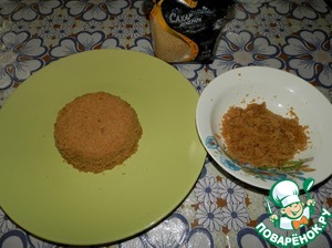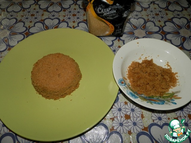 Аккуратно вынуть нежный бисквит на блюдо, срезать верхушку и размять её в крошку.