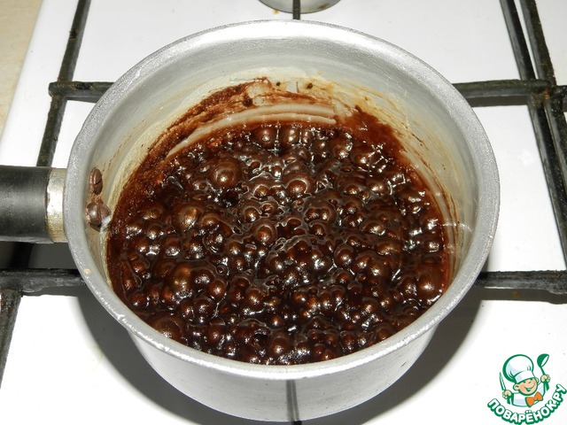 Отдельно смешать растворимый кофе, какао и оставшуюся ложку сахара. Всыпать в сливочно-сметанную смесь, хорошо перемешать. Варить глазурь до густых пузырьков.