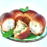 В миску налить теплое молоко, добавить дрожжи и дать постоять 5-10 минут. Затем добавить яичный белок, соль, йогурт, растопленное сливочное масло и хорошо перемешать венчиком.