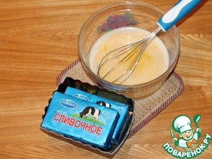2. Добавьте охлажденное растопленное сливочное масло и молоко.