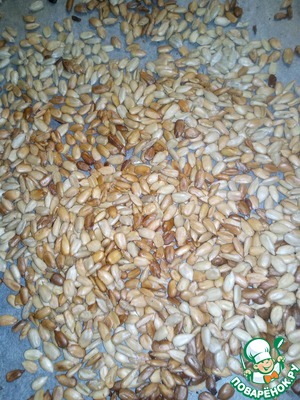 Поджарить семечки подсолнуха на сковороде или на противне в духовке около 5 минут.