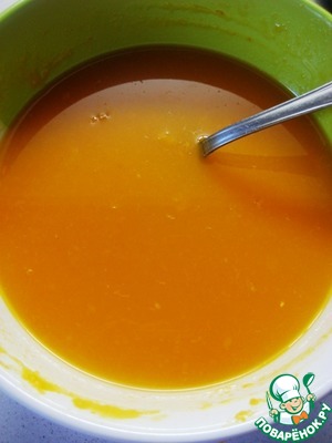 Снимаем с огня и вливаем желатин в тыквенно-апельсиновую смесь. Перемешиваем. -