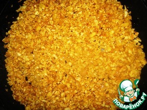 На небольшом количестве растительного масла обжарить до золотистого цвета лук. -