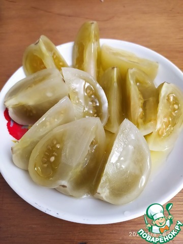 Бочковые соленые зеленые помидоры - мое воспоминание детства. Они и сейчас есть, но тогда они реально пахли бочкой и продавались в овощных магазинах, лёжа в мутном рассоле в больших круглых аквариумах. Они были соленые и ядреные, а запах... у них был такой аромат, что казалось невозможным повторить такие помидоры в домашних условиях. Да, собственно никто особо и не пытался. Потом на рынках стали продавать свежие зеленые помидоры, которые спросом не пользовались особо, хотя иногда их покупали и делали на зиму очень неплохие салаты, нарезая помидоры дольками и добавляя туда морковь, перец и огурцы. А соленые зеленые помидоры покупались исключительно в магазинах и только с ними ассоциировались. Впрочем, рецепты засолки попадались, и я их собирала. Но не готовила, увы. Наверно, каждому рецепту свое время. Не так давно я разжилась несколькими килограммами зеленых помидоров и решила все-таки попробовать. Начиталась разных рецептов, насмотрелась видео, что-то было общее, что-то показалось мне не тем, что-то не приняла сразу... одним словом, из всего просмотренного родился вот этот рецепт, который с первого раза оказался попаданием в десятку, ибо вкус получился тем самым... из детства...