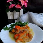 Вкусное блюдо, интересный вкус! Морковь, лук и хрен немного уменьшила по количеству, остальное по рецепту. Подавала с картофельным пюре + овощной салат