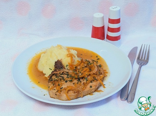 Мясо получилось превосходное! На гарнир картофельное пюре. Рецепт взяла в КК.