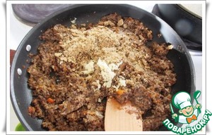 • Снимаем сковороду с огня, всыпаем молотые орехи, вливаем соевый соус, хорошо перемешиваем.