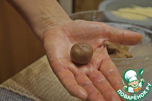 • Возвращаемся к нашим дивным пряничкам. Отщипываем небольшой кусочек шоколадного теста, катаем из него шарик.