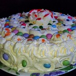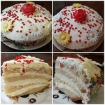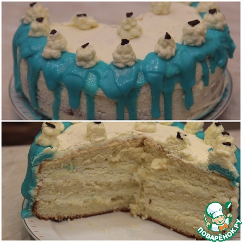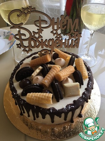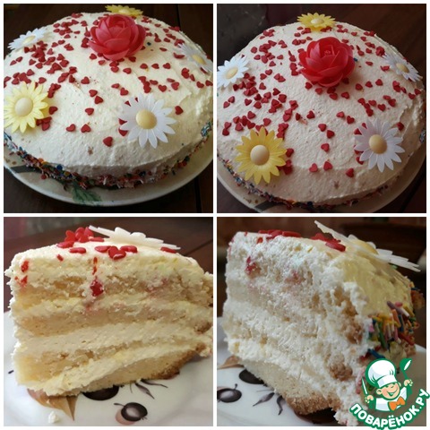 Собрать торт, обмазать его верхушку и бока кремом. Оставшимся кремом украсить торт по вашему желанию. Все готово!