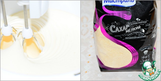 Я использую мелкий тростниковый сахар от ТМ Мистраль. Он идеально подходит для приготовления бисквитов. -