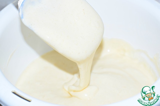 Тесто получается очень легкое, воздушное. Мягко и свободно стекает с лопатки. Главное, не перестараться и не вымешивать тесто слишком долго.