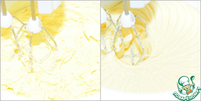 Яйца взбить с сахаром на самых мощных оборотах миксера добела. Масса должна увеличиться в объеме в 4-5 раз.