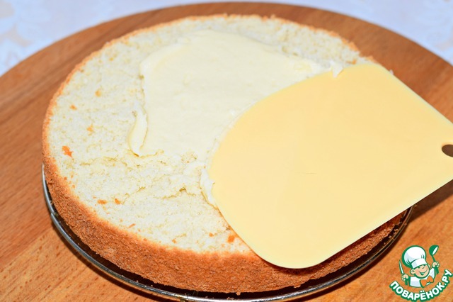 Будет просто замечательно, если и бисквит (завернуть в пищевую пленку), и крем (плотно прикрыть емкость крышкой) проведут ночь в холодильнике.