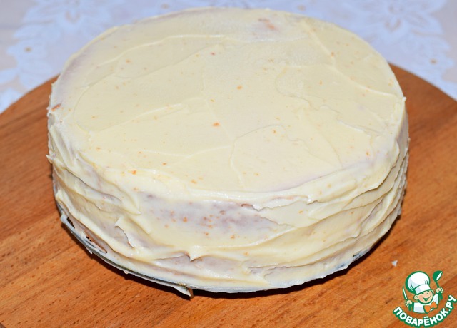 Промазать каждый корж кремом. Крема не жалеем - его получается много! -
