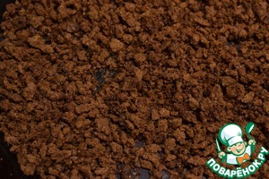 Бородинский хлеб руками превращаем в мелкую крошку (я пробовала на терке, но не очень удобно)