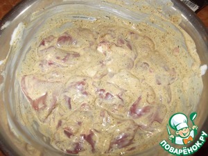 Перемешиваем печень и оставляем мариноваться пока занимаемся другими ингредиентами.