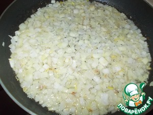 Лук режем не сильно мелко и отправляем пассироваться до прозрачности в разогретом растительном масле.