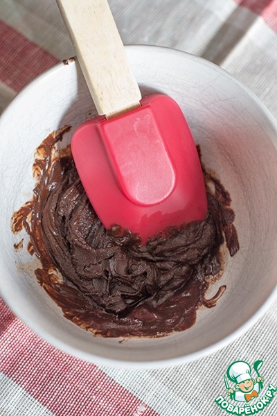 Во вторую половину добавить растопленный шоколад и тоже хорошо перемешать до однородности.