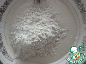 Всыпать муку и замесить эластичное тесто.