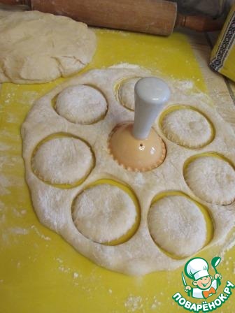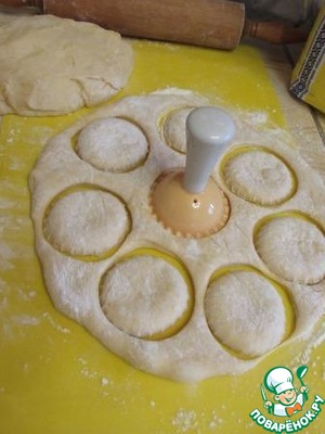 Вырезала формочкой для пончиков заготовки. Можно использовать стакан для этих целей.