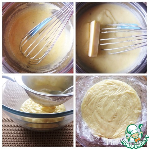 Молоко доводим до кипения с семенами ванили. Желтки смешиваем с сахаром и крахмалом. Часть горячего молока вливаем к желткам, перемешиваем и возвращаем в сотейник. Смесь доводим до кипения и кипятим 1 минуту. Выключаем газ, вводим масло. Крем накрываем пищевой пленкой в контакт и охлаждаем.. -