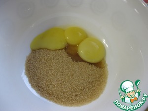 В миске смешать желтки и тростниковый сахар, - я очень полюбила этот сахар за его карамельный вкус!