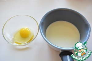 Для начала приготовьте заварной крем. Яйцо смешайте с сахаром, ванильным сахаром и крахмалом. Молоко нагрейте до кипения и влейте при помешивании яичную смесь
