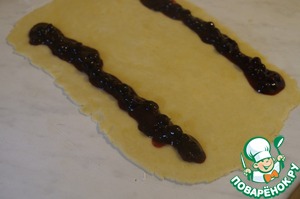Взять одну часть и тонко раскатать в прямоугольник.