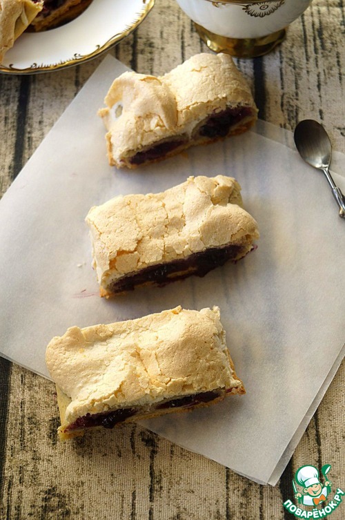 Для этого рецепта не потребуется каких-то экзотических ингредиентов. Все эти продукты, как правило есть у любой хозяйки в холодильнике. Нам понадобится немного времени, чтобы приготовить вкусное ароматное, незабываемое печенье, которое оценят и взрослые, и дети. За рецепт благодарю Nin@ G.Lov. Однако я немного отступила от оригинала и сделала другую начинку (в оригинале были вишни, но у меня их не было, а также в безе добавляется грецкие орехи, хотя и без них получилось очень вкусно).