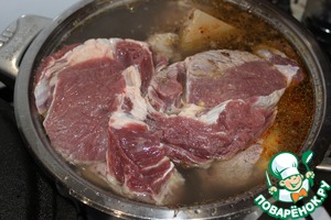 Девочки и мальчики, этот рецепт палочка-выручалочка, когда нет времени. Очень вкусен, быстр и прост. Подойдет для любой начинающей самой неопытной хозяйки. Вареное мясо в нем абсолютно меняет свой вкус. Мужчины от такого мяса никогда не откажутся. Этот вариант делаю впервые, но с базовым рецептом очень близко знакома. Этот рецепт выставляла раньше на поваренке http://www.povarenok .ru/recipes/show/823 85/. Нашла у Эльмиры Меджитовой более продвинутый вариант и делюсь им с Вами, рецепт подогнала под себя. Оба варианта вкусные, буду теперь их чередовать.