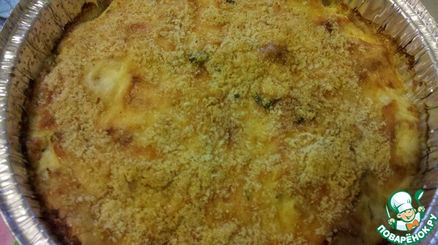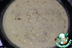 Выкладываем на мясо 1/2 часть сметанного соуса (если слоев 2), посыпаем 1/2 частью сыра и 1 ст. ложкой сухарей. Повторяем слой. Мясо-соус-сыр-сухари. Ставим в разогретую до 180 гр. духовку на 20 минут. Последние 5 минут можно включить вентилятор.