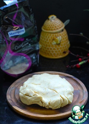 Если 250 г муки окажется мало и тесто будет прилипать к рукам, добавить ещё (не более 50 г). Тесто получается очень мягким, не липнет к рукам. Из теста сформировать диск, завернуть в пищевую плёнку и отправить в холодильник на 2 часа, лучше на ночь. -