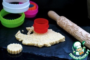 Формочками вырезать заготовки, лишнее тесто убрать в холод ( потом обрезки собрать в шар, отправить в холодильник и снова раскатать до последнего печенья) -