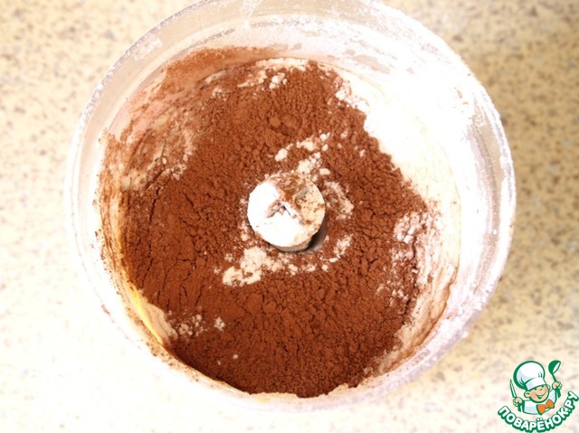 Точно так же замесить шоколадное тесто, только просеять вместе с мукой какао-порошок, накрыть и убрать в холодильник.