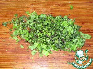 Мелко измельчаем 50 гр. свежей мяты.