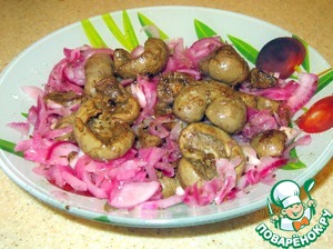 Перемешиваем обжаренные почки с маринованным луком и наслаждаемся чистым вкусом.