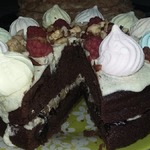 [+5]Понравилось, что готовить просто, никаких сложностей. Пропекся в моей духовке (электрическая) за 50 минут. При остывании - серединка осела и вместо холма получился ровный корж. Пирог темный, немного влажный. Когда горячий - чувствуется винная нотка, в холодном виде уже не так. Делала все по рецепту, для нас сладость была идеальна, не приторно. Не горько из-за какао.