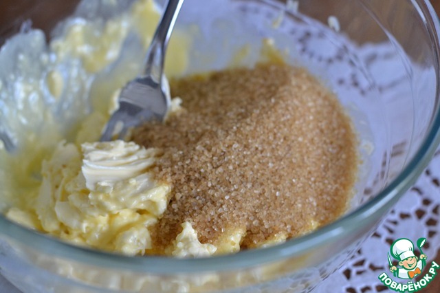 В отдельной миске смешать масло комнатной температуры и коричневый сахар ТМ Мистраль. Вымешать ложкой.