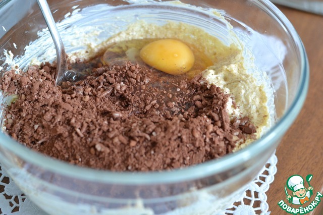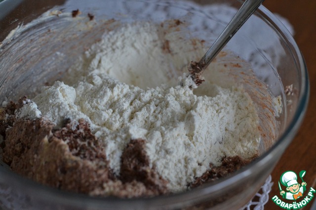 Добавим к сладкому маслу сухую смесь. Перемешать.