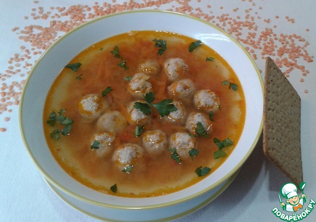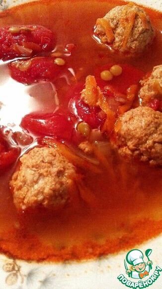 Рецепт «Томатный суп с чечевицей и фрикадельками»: